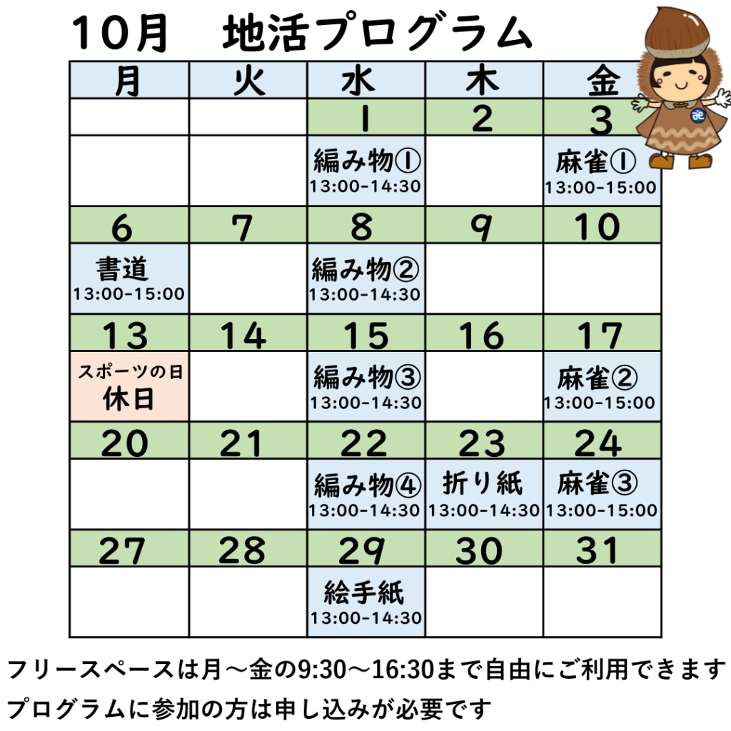 季節の変わり目、体調に合わせて、無理のないように、ご興味のある活動がありましたら、ぜひお気軽にご参加ください。
