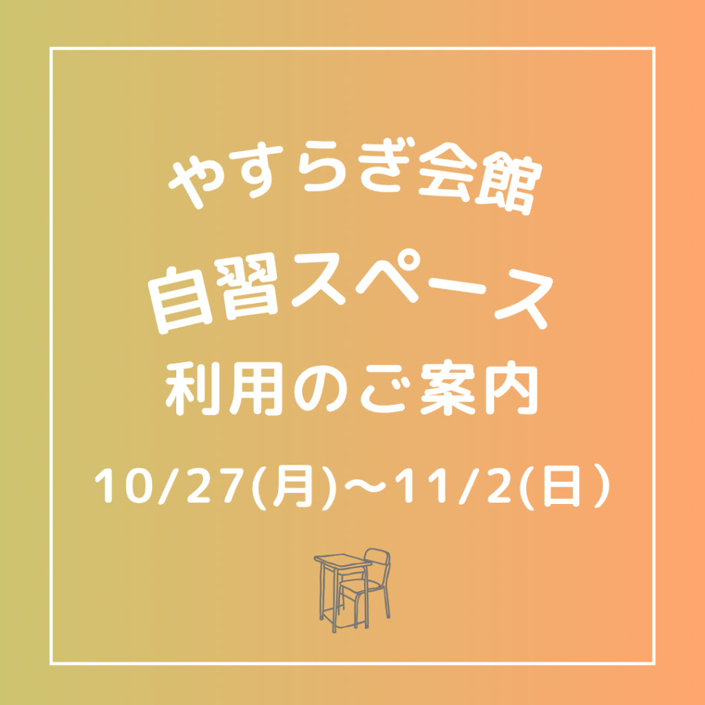 自習スペースのご案内(10/27~11/2)(一部変更がありましたので、再度お知らせいたします。)