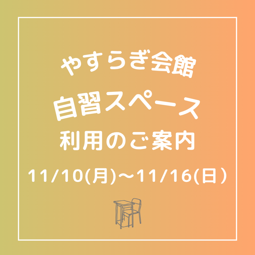 11/10~11/16の自習スペース利用のご案内です。読書や自習時間としてご利用ください。