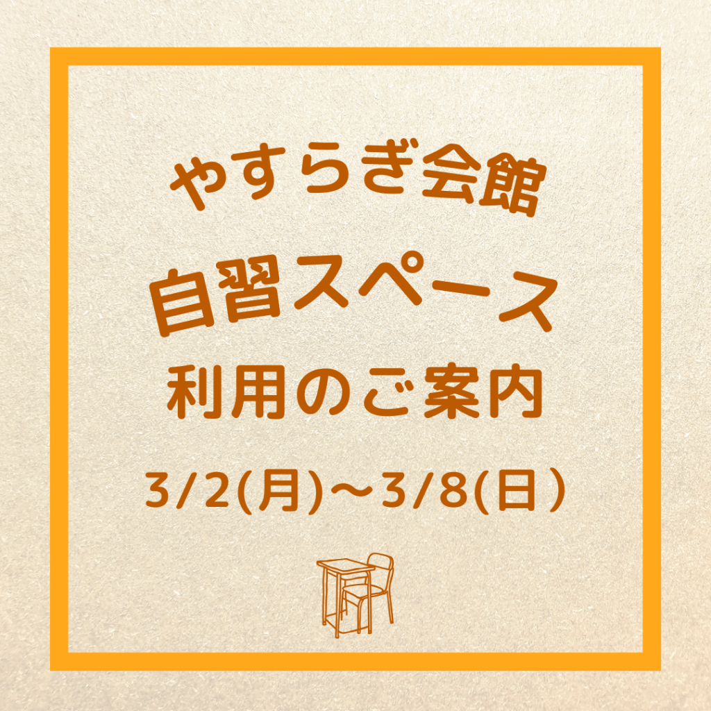 自習スペースのご案内(3/2~3/8)